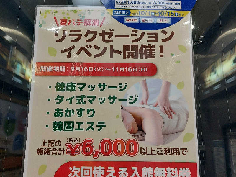 たまたまリラクゼーションもキャンペーン中で、6000円ジャストのコースにしたら、入館券1枚もらえました。しかもドリンク1杯無料とな✨