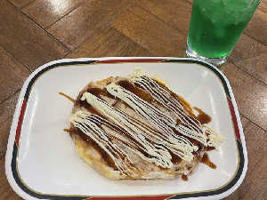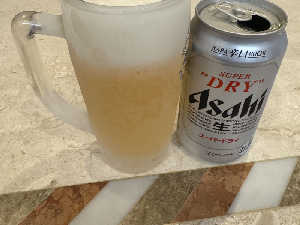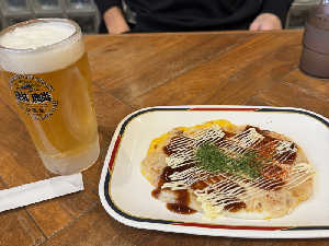 何度で凍らした?と思うくらいキンキンのグラス付き😍イカ焼きも🦑たっぷりで計650円‼︎絶対リピ🤤