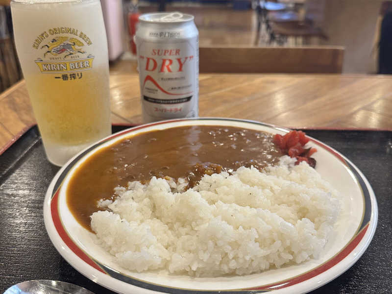 麒麟一番搾りのジョッキで飲むスーパードライとカレーライスのセットが1000円
