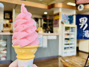 可愛えぇ〜鮮やかピンク色のソフト♡本格甘酸っぱい味もそのハズ…苺の果肉がフル〜ティ〜さを格上げ旨々❣️