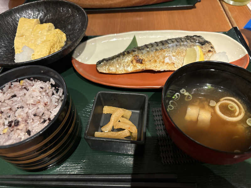 焼き鯖とだし巻きにごはんをセットでつけました🙌
