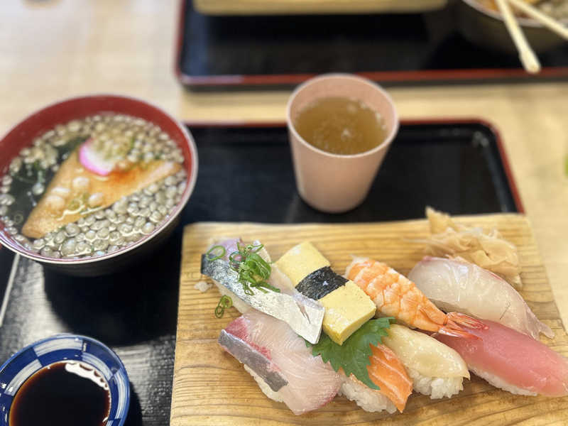 ご飯が有名な音の花温泉で念願のお寿司🍣 汗かいた後の酢飯が沁みた〜