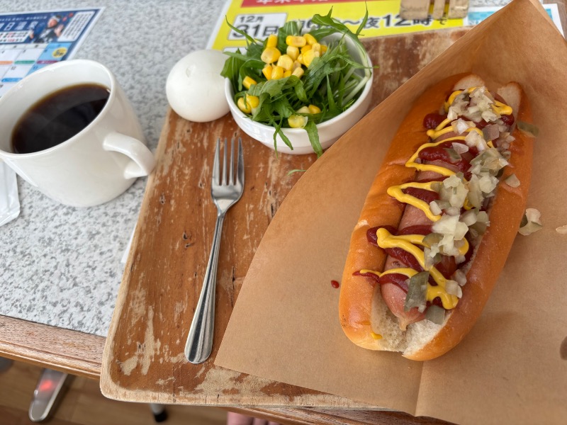 まだ半分ととのいの中で食べるホットドッグ🌭食べるまでが朝ウナ🔥ととのいの向こう側