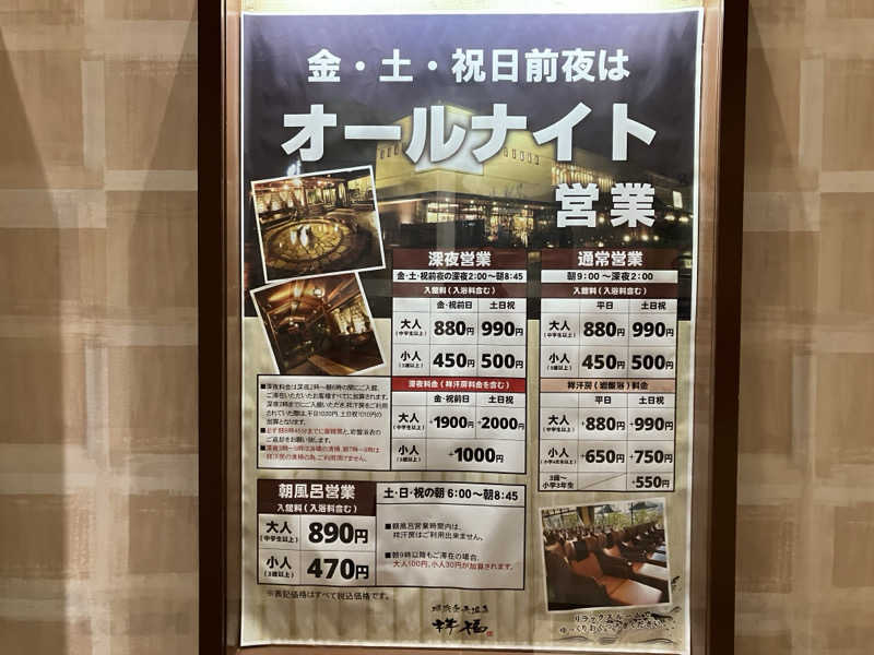 岩盤浴:平日700円、土日祝800円 ※岩盤浴のみの利用は不可 (2022年11月21日現在)  |