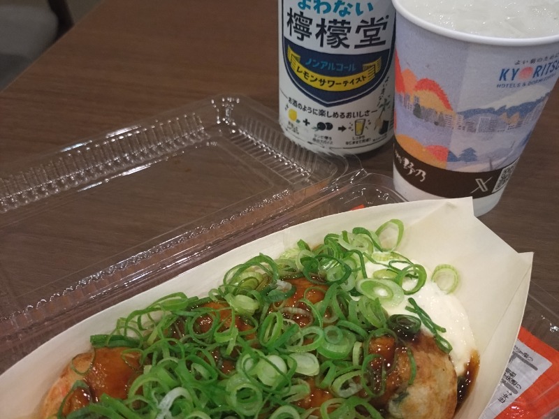 たこ焼き買ってきて、ドーミー夜鳴きも食べて。(夕食は既に食べてる🫨)