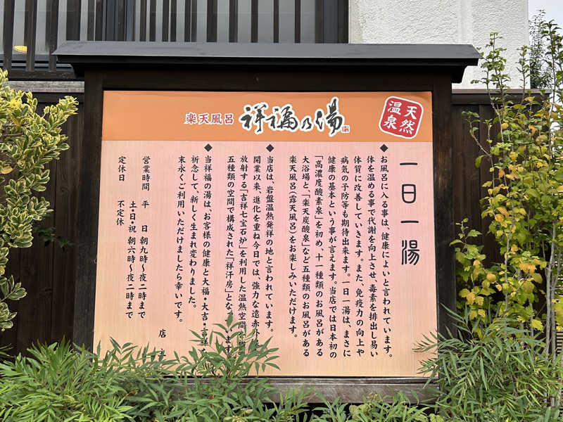 | 施設名 | 楽天風呂 祥福の湯 |