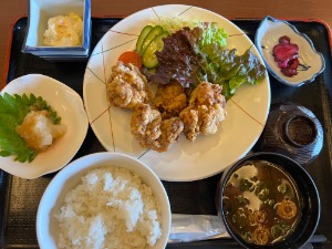 唐揚げはパリジュワで美味い。ポテサラが小鉢(意味不)、ご飯が不味い。