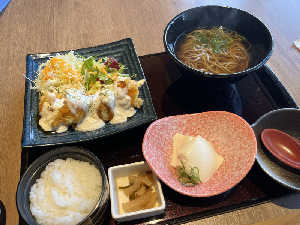 甘酢だれとタルタルソースがこれでもかってくらいかかってるのにサックサクの衣が美味い