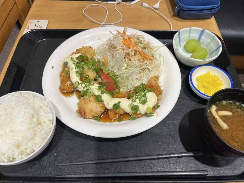 野菜多めなのありがたい。 チキン南蛮はまった。また食べたい。 マスカットついてた。美味しかった。