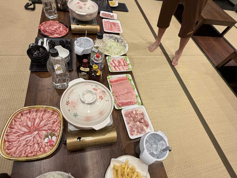 奥の座敷で常連さん達と誕生日しゃぶしゃぶパーティ🍲🎂 飲み食いしながらサウナトークで盛り上がった🤗