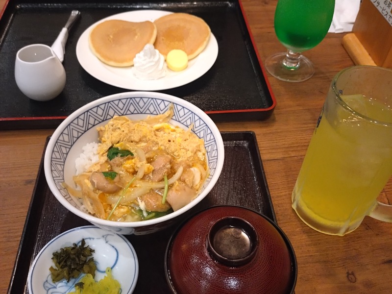 夜食におどんぶり。味噌汁も親子丼もぬるめ(´・ω・`)忘れ物タオル届けてくれてありがとうございます。