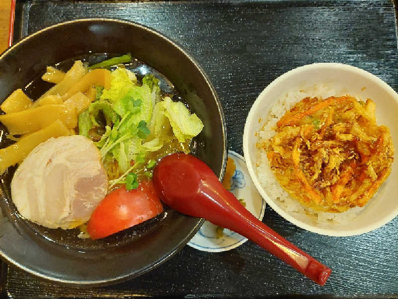 ラーメンの塩味、かき揚げの甘さで非常に美味しい。さ活後に体が欲する最高のメニューでした🍴