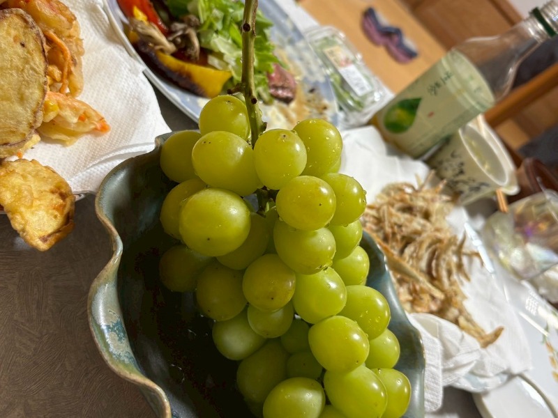 🐼持ってきてくれた激甘新鮮朝どれシャインマスカットで〆