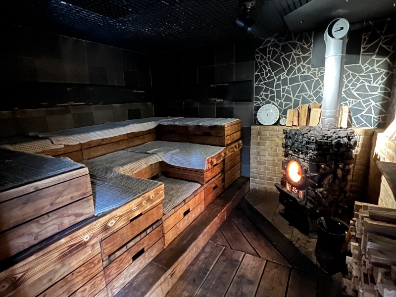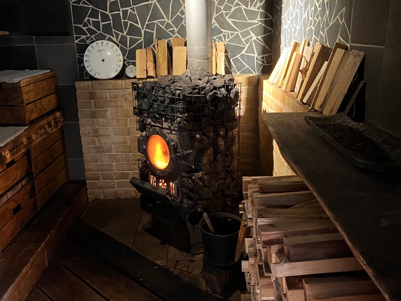 サウナ室…薪ストーブが(・∀・)イイ!!ロウリュウ威力抜群(*´艸`)です。