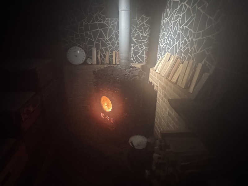 照明は薄暗く窓は無いのでひたすら薪の炎と向き合います。