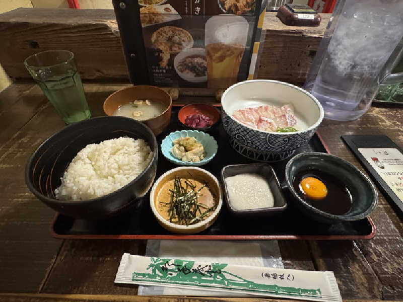 出汁と混ぜて頂くまぜ飯御膳。 とろろ芋もうまく、鯛の歯ごたえ、出汁もウマイ‼️