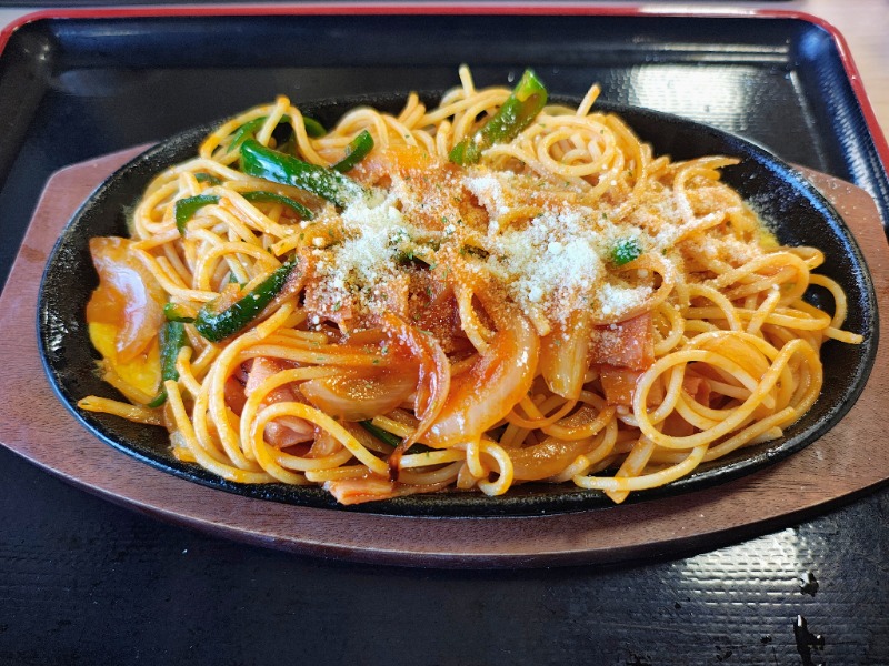アチアチ鉄板の上に卵、その上にナポリタン。好きなやつです👍👍👍 美味しかった😋