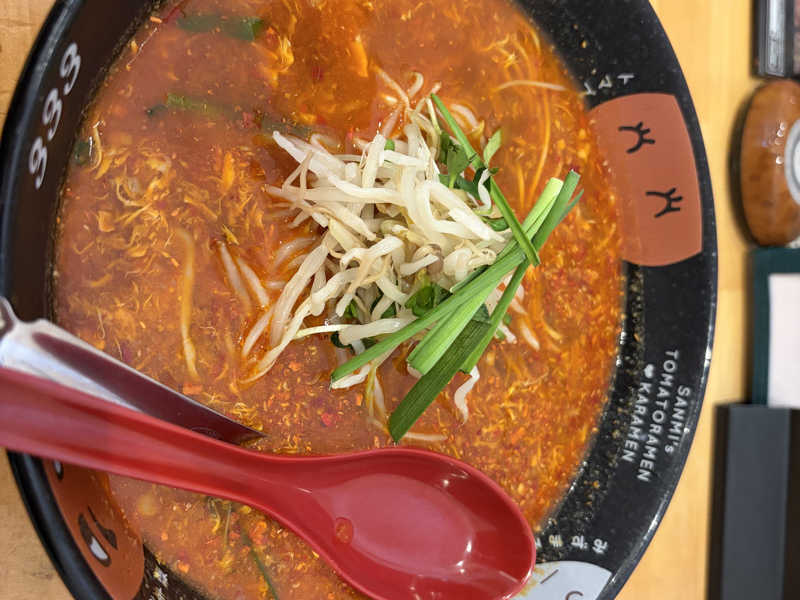 サウナ後の身体に冷麺の冷たさが嬉しい。 キムチとトマトの酸味がさっぱり爽やか。