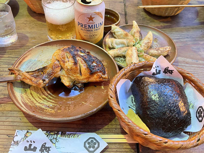 足湯を見ながらご飯 サウナと岩盤浴後のお酒は本当に美味しい