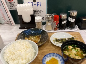 この朝食が500円で食べられるのがありがたい。サバも味噌汁も美味しい😋