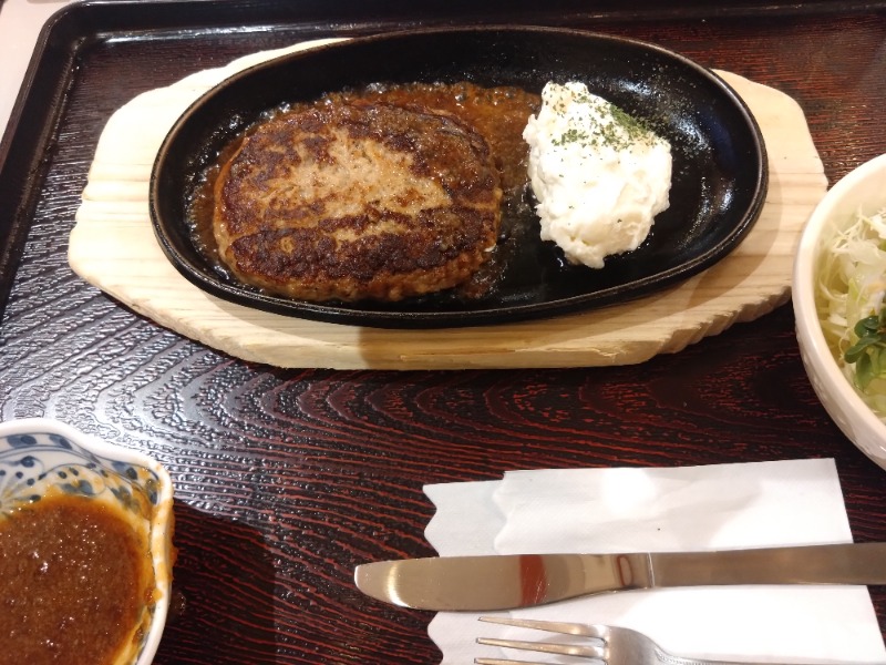 ちょっと冒険して初めて注文。素朴な味わいでアツアツ。マルシンハンバーグのレベルアップVerという感じ