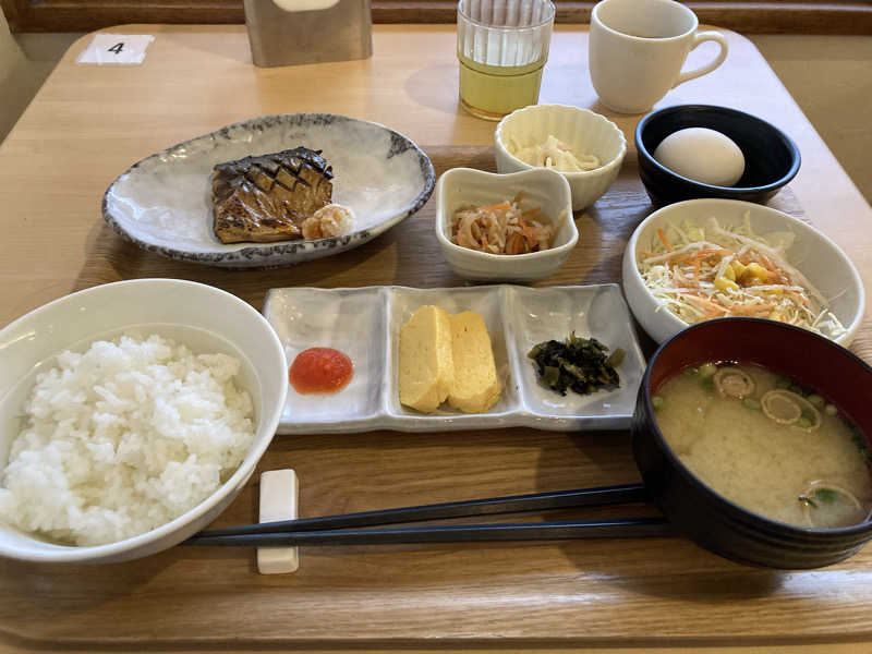 宿泊者用朝食。ご飯と味噌汁1杯ずつおかわり可。きっちりおかわりしました。