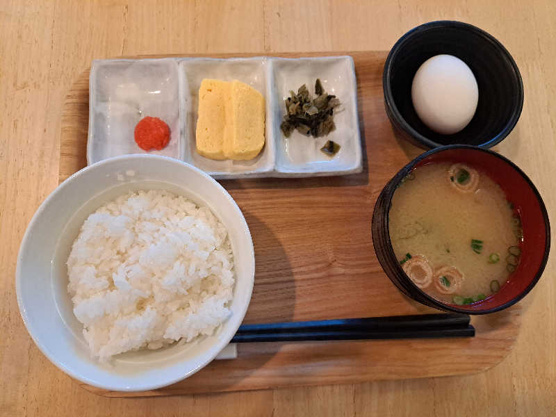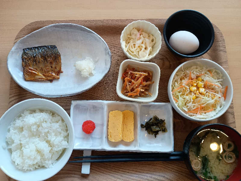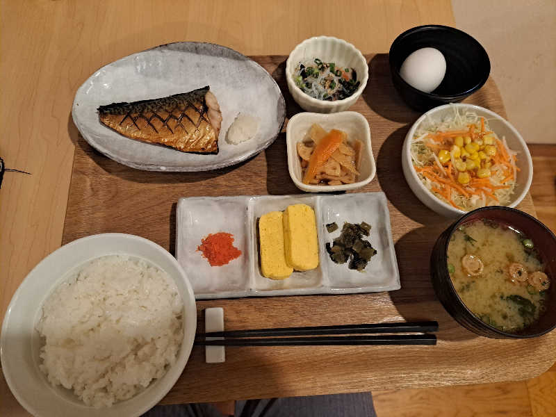 宿泊者用朝食。ご飯と味噌汁1杯ずつおかわり可。きっちりおかわりしました。