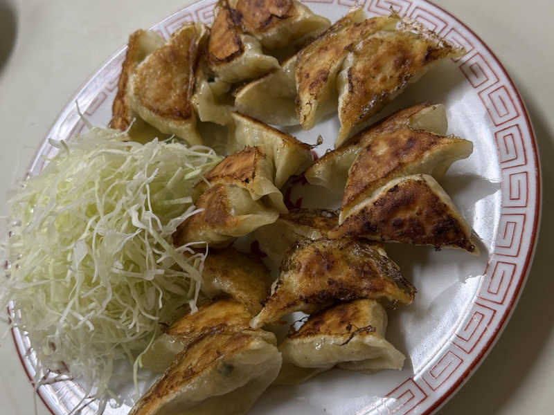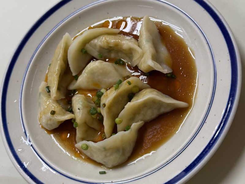 隣に旭軒も並んでるやん❣️ 32ニキくんとどっちから先に行くか考えて餃子から決定🥟 ひと口サイズの可愛らしい餃子で焼き餃子と水餃子を食べてから