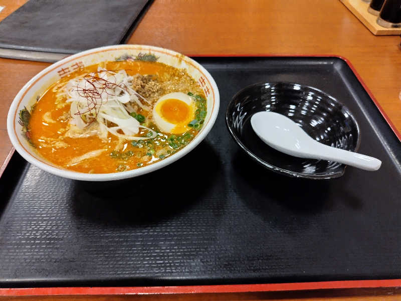 金曜日限定の担々麺が偶然にも 残ってた♪ 辛くないので頼んだけど サウナ後だから汗だくに(笑)