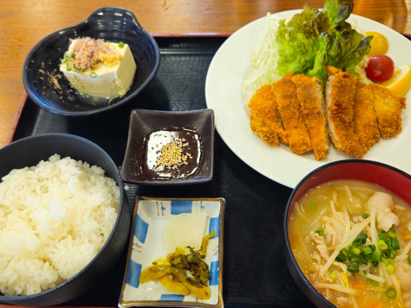 今日はとんかつ。豚汁美味かった!