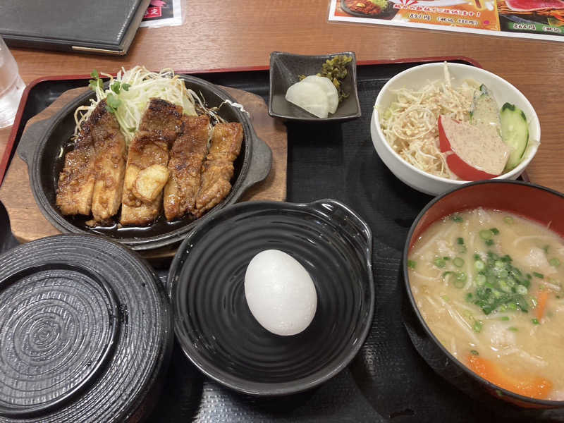 ここの豚汁はやっぱり美味しい😋生卵のロッキー飲みも敢行❗️