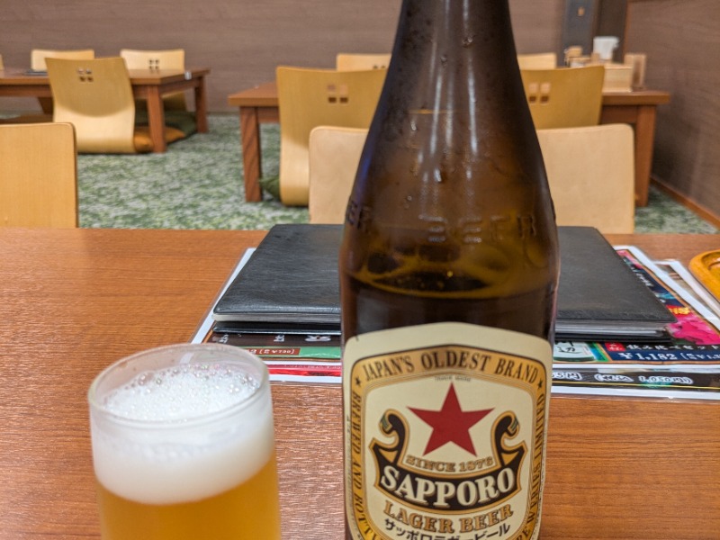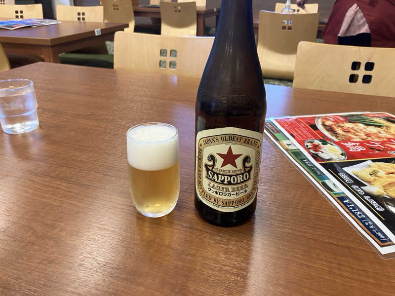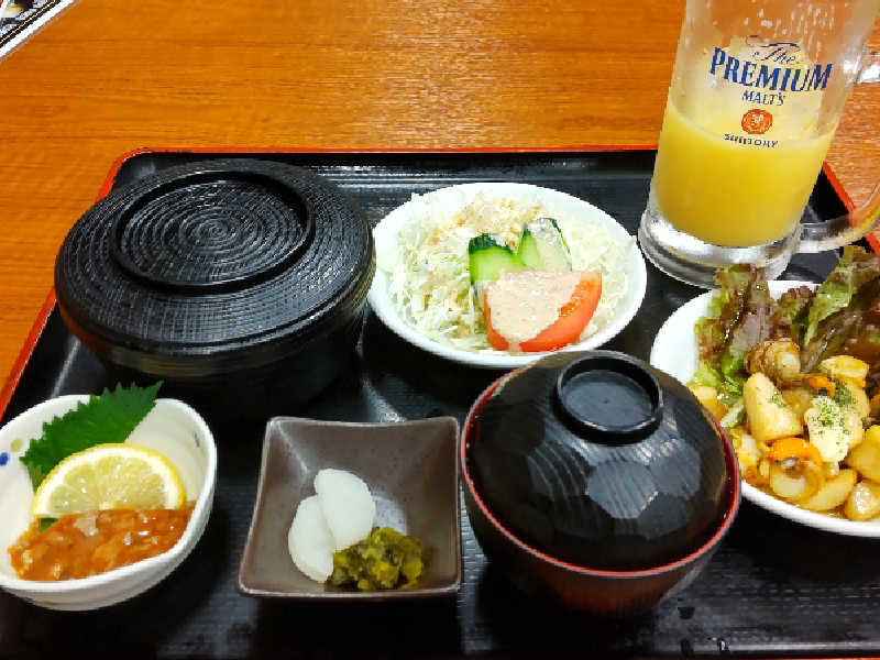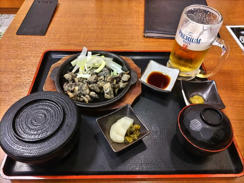 鶏炭火焼にご飯セットとビールを足してみた。※我慢できず、ちょいとビールをあおってからパシャリ