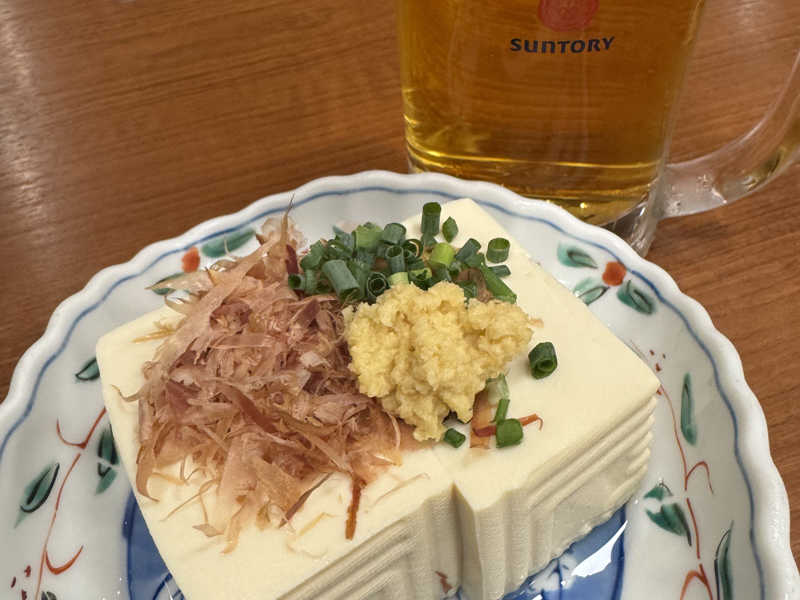 酢モツとビールも。 酒のあてには丁度良い適当さ(褒めてる) 月〜木の18〜20時はビール半額。