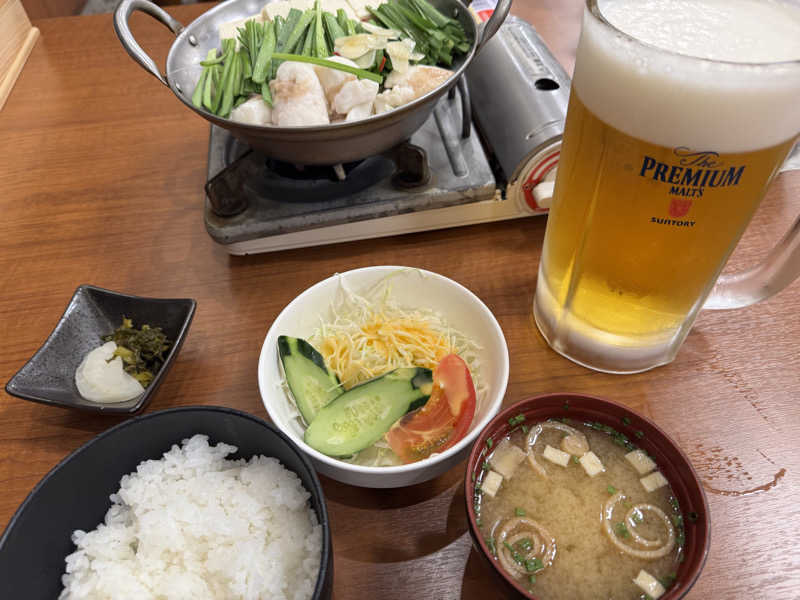 博多といったらもつ鍋🐖ビールはメガは多すぎた🍺ご飯と味噌汁はおかわり🍚食後にアイスクリーム🍨