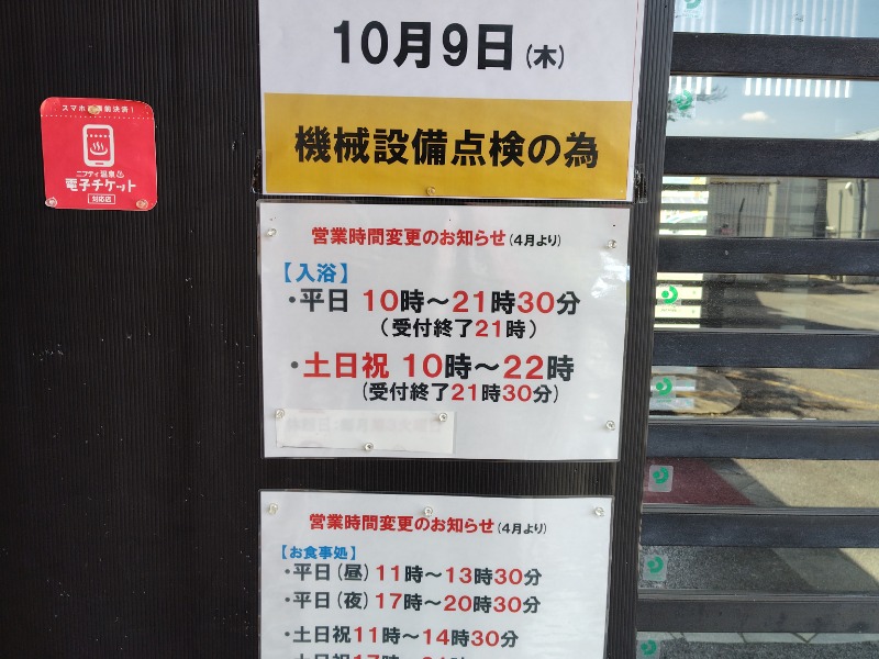 一言:10月はこちらからライドオン‼️昼間は暑い😵1月ぶりのライドオンでしたが、値段改定がいろいろ。まんぷくセットは1000→1200円へ、煮魚セットがなくなってた。ロッカー(リターンなし)10→20円、20→30円になってました👀どこも大変だよね。平日の営業時間が30分短くなったみたい。