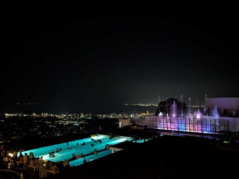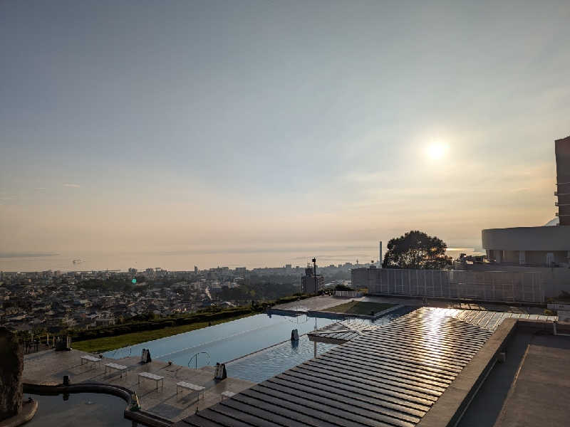 サウナ探してたら露天の端っこに発見。ガラス張りで絶景。