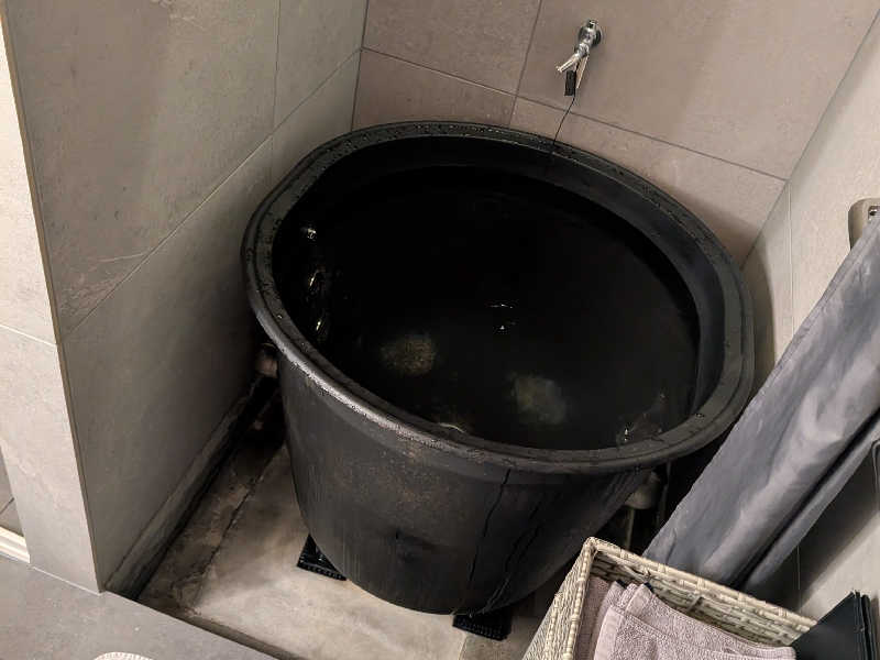後ろ側からダバダバ溢れた分は給水されるので遠慮なく。ジェットのおかげで一気に身体が冷却されていった。室内のエアコンは温度を変えられないので水風呂後ちょっと寒く感じるけど2セット目以降気にならなくなった。