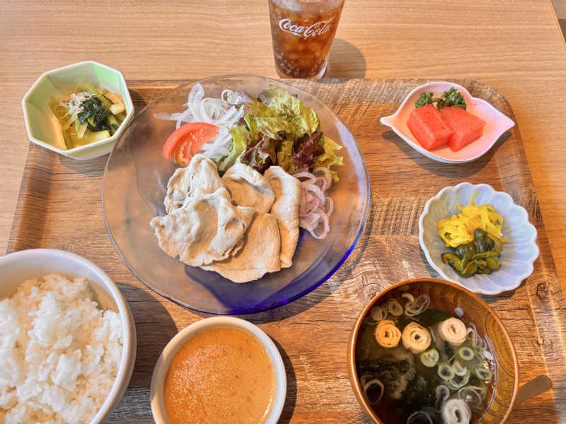 特産品使用云々よりも早く提供されそうだなと思い🍛 サラダも三種類のドレッシングを選べる楽しさも🥗