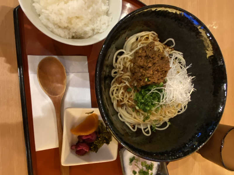 本格的で非常に美味。山椒や花椒の痺れる辛さがある。ご飯セットを頼むとご飯、漬物、温泉卵がついてくる。