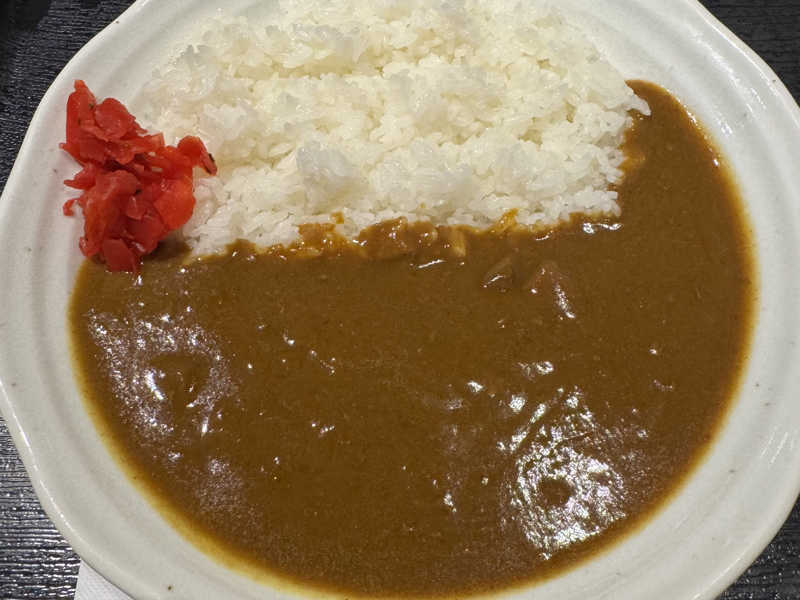朝カレー、スタンダードなポークカレー。卓上の唐辛子?を入れて辛さ増し。