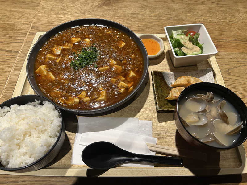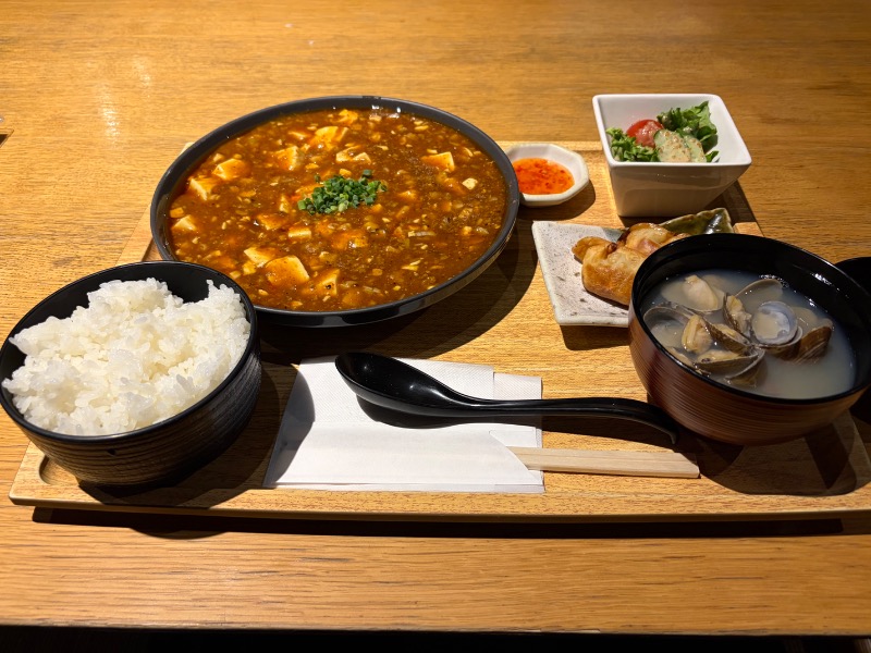ドラマサ道で原田泰造さんも食べてた麻婆豆腐定食!かなり辛くてご飯が進む!しじみ汁も美味😋