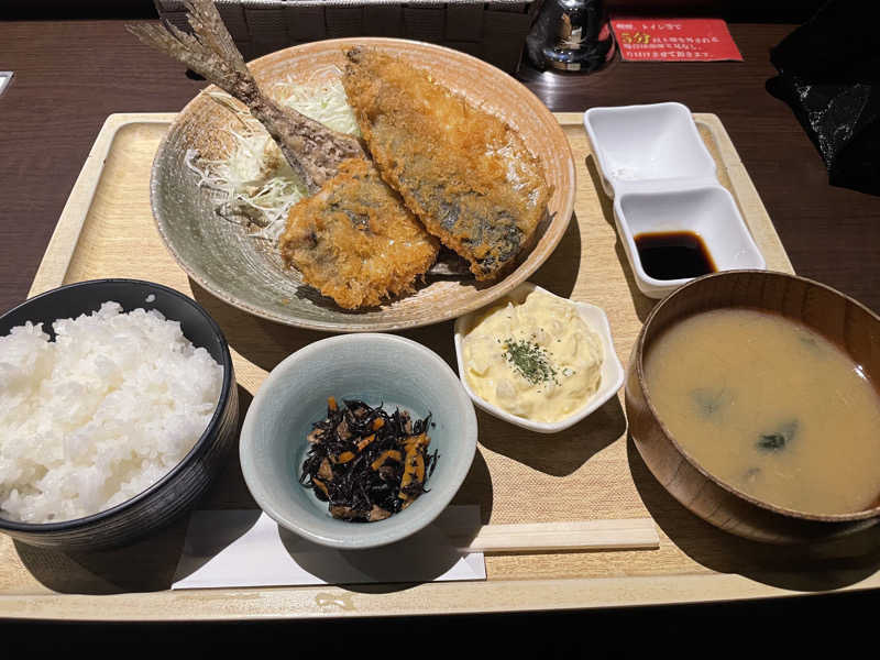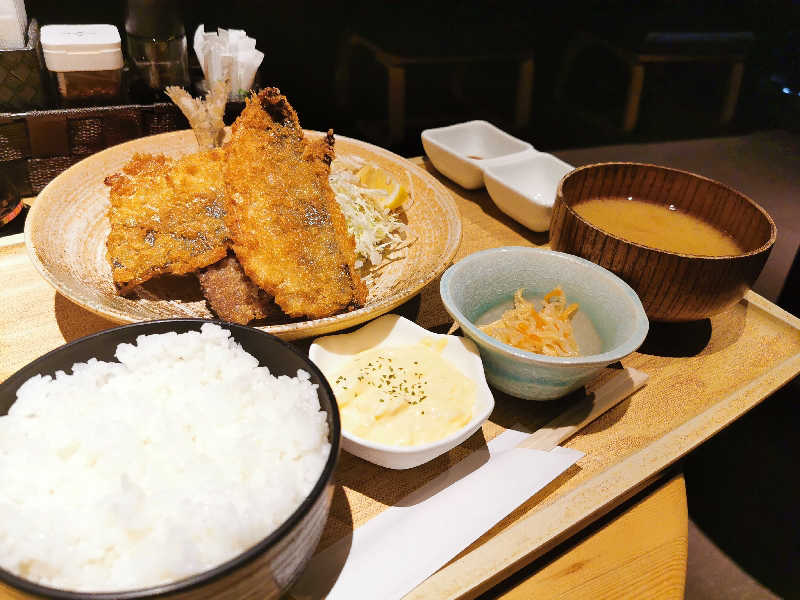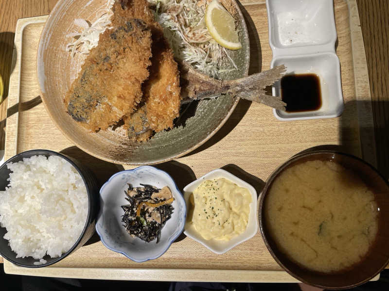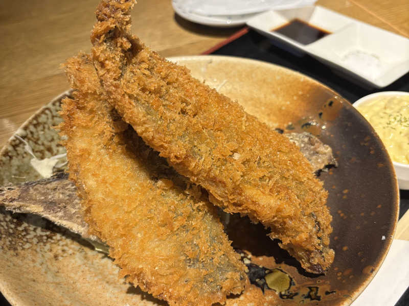 湯らっくすのアジフライが本当に美味しい。