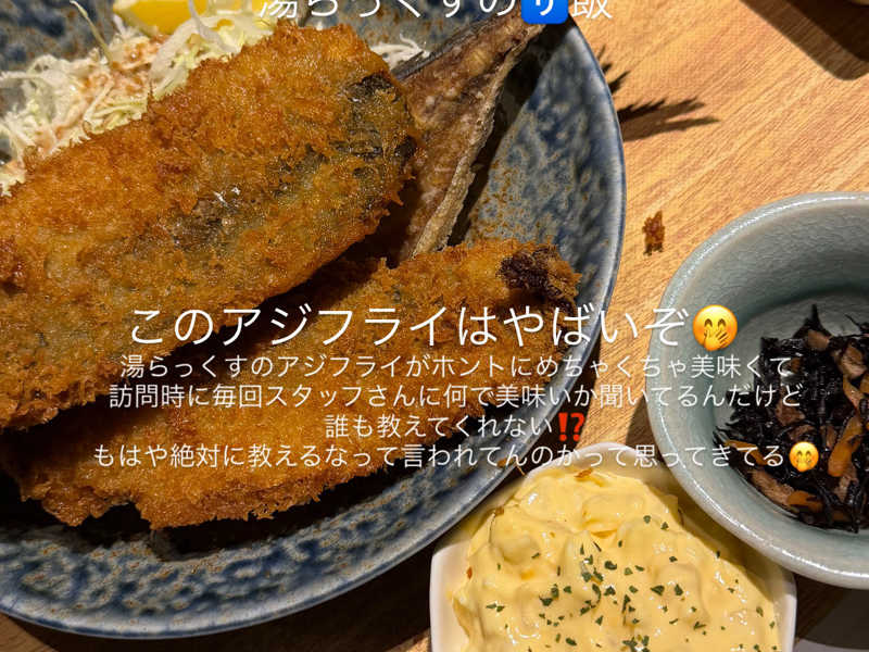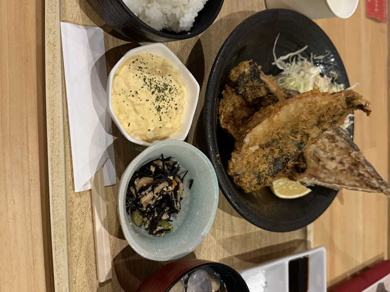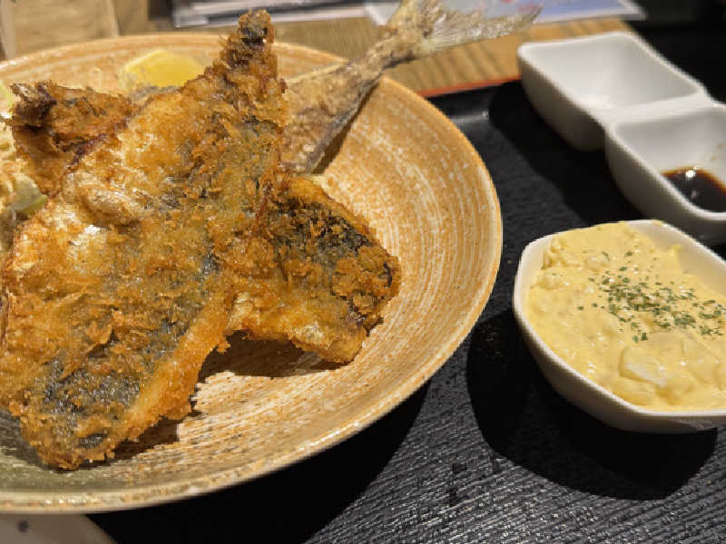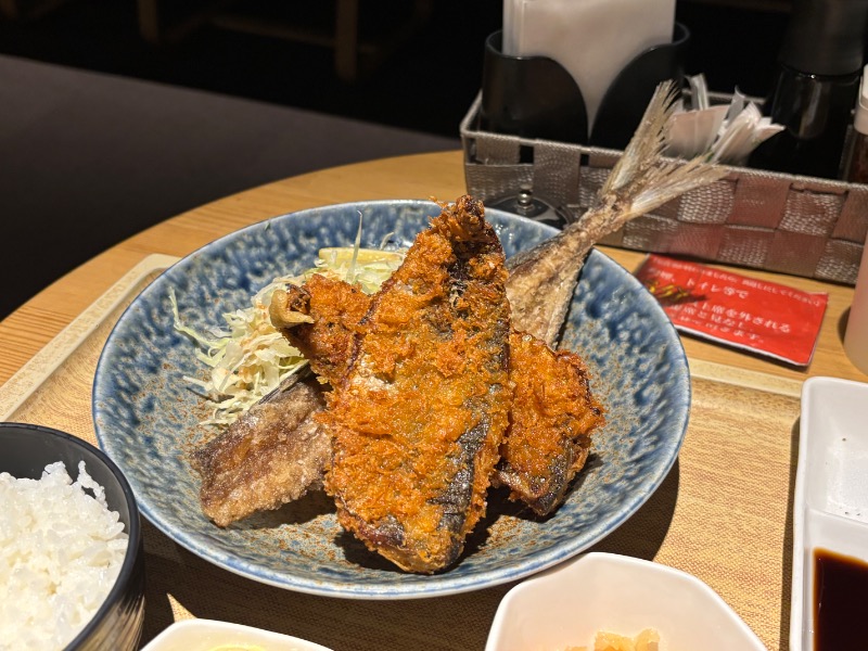アジフライはどでかくてびっくり。チキン南蛮は黒酢が効いてて大好きな味でした😍