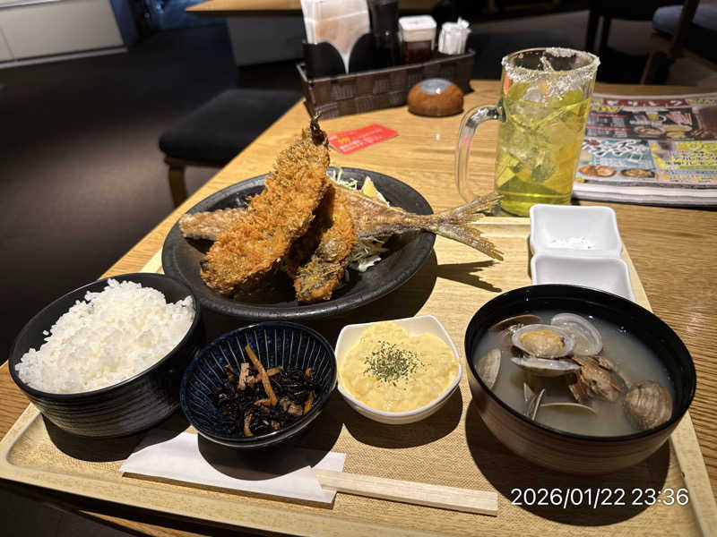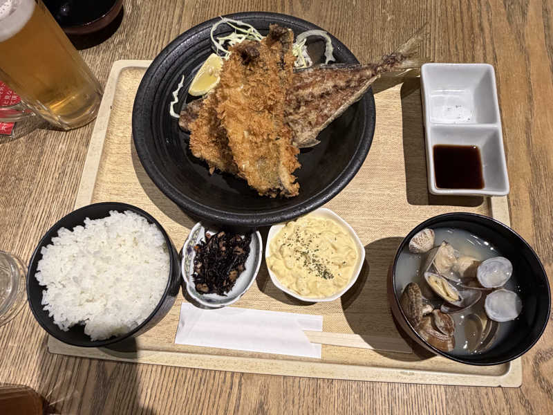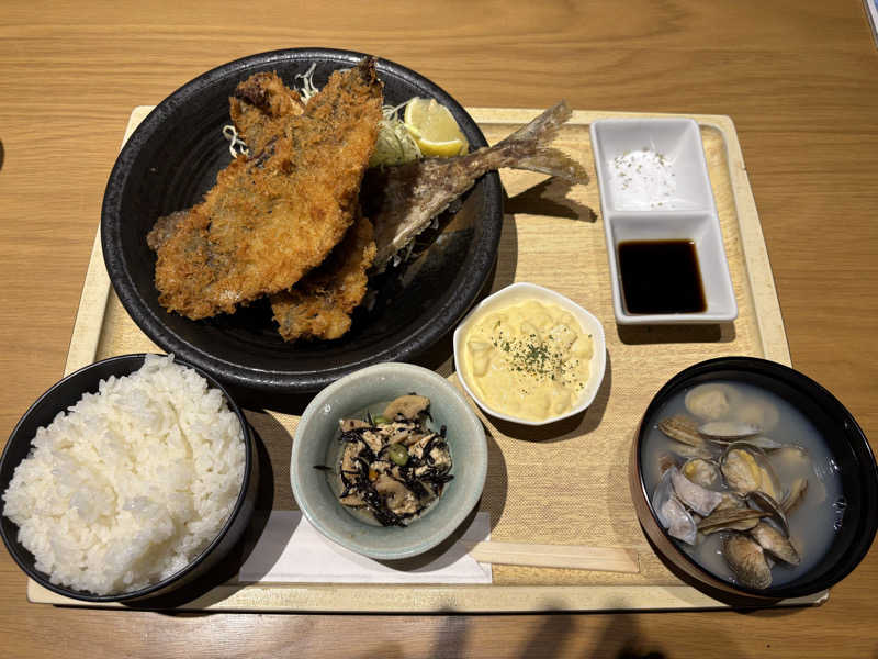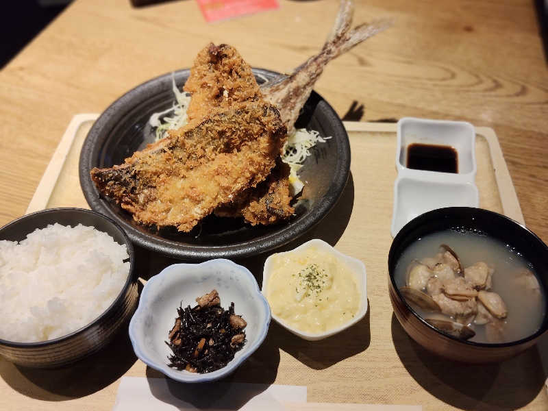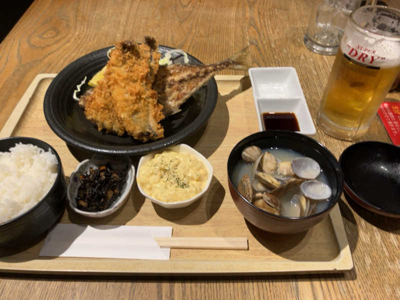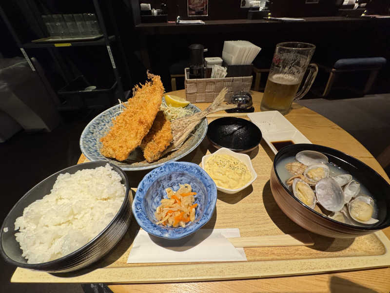 アジフライしみじみ旨いし、貝汁は身の数多すぎ濃厚過ぎてヤバい