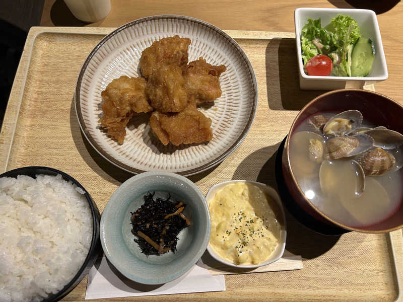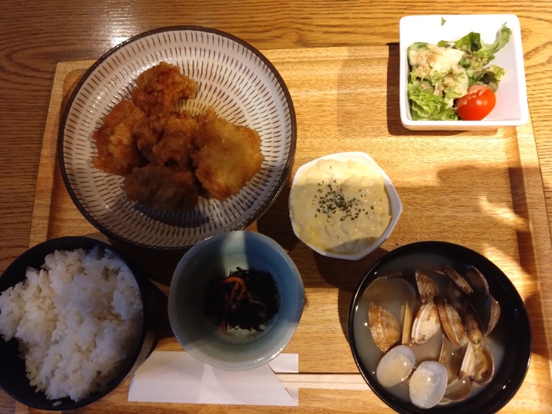 タルタルの卵大きめはよし、貝汁はもう少し塩分欲しかった