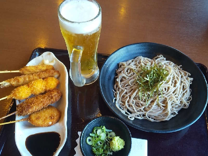 串揚げは冷凍食品だろうけど、揚げたてでほくほく。ざる蕎麦もわさびが多めで嬉しい😆