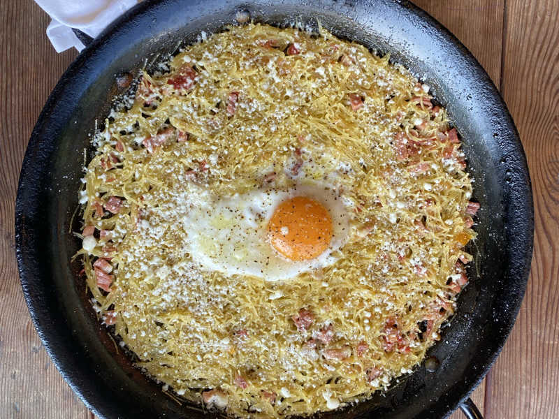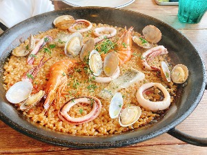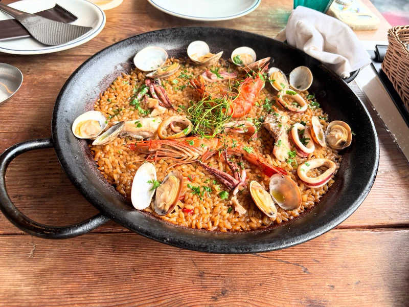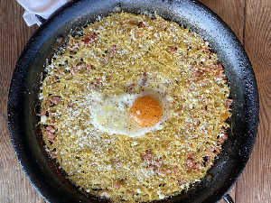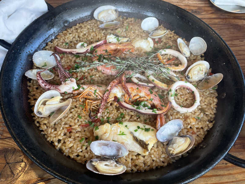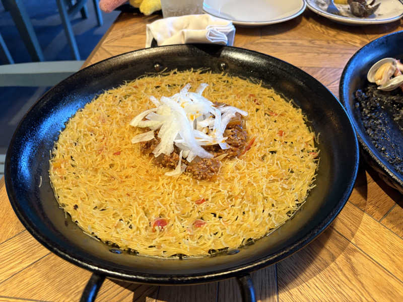 パエリアのパスタバージョン。スタッフさんおすすめでカルボナーラみたいに濃厚で美味しかった😋