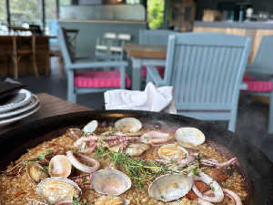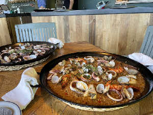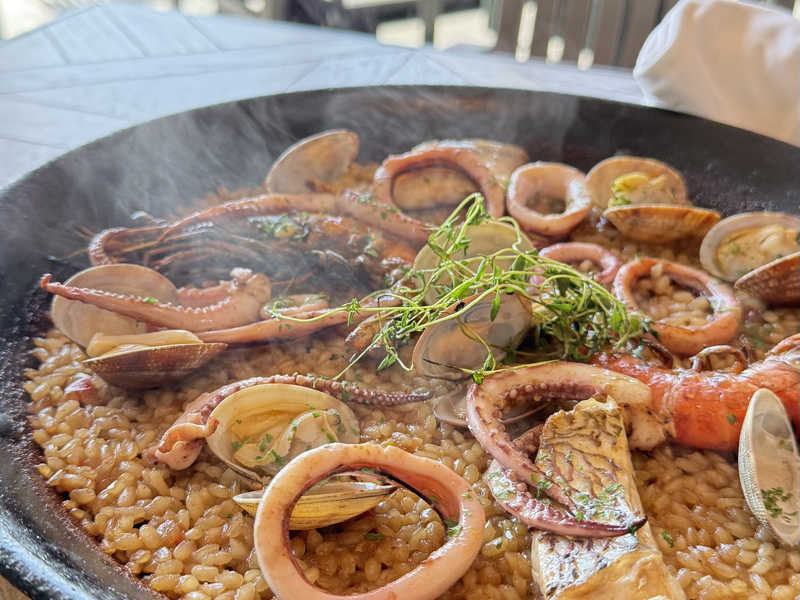オーシャンビューのレストラン。パエリアは勿論、全てのメニューがサイコーです😋 写真は鰹のトスターダ🐟