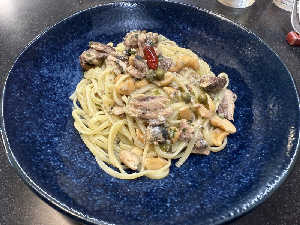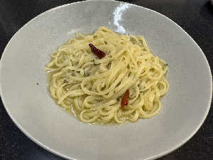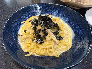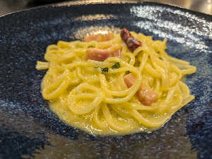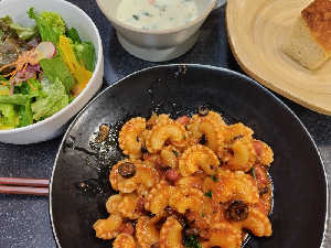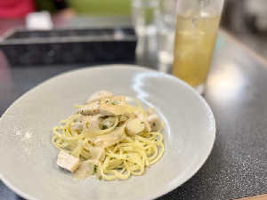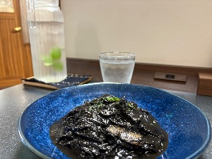 タコに似た変わった形のパスタ。後からピリッと口に残る味が美味しい。