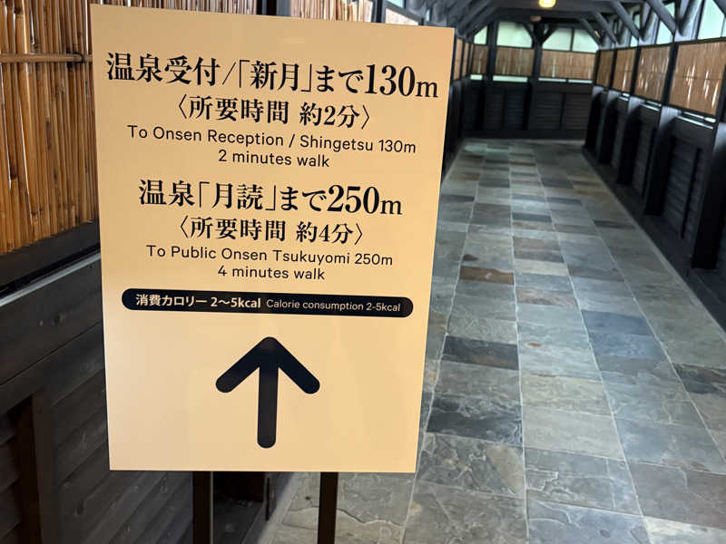 入口すぐに湯殿まで遠い旨の案内板。